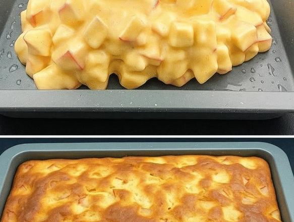 Розігрійте духовку до 180°C. У мисці збийте 1 яйце зі 165 г коричневого цукру. Щоб надати яблучному пирогу ще більше смаку , шеф-кухар також додає насіння красивого стручка ванілі . Якщо у вас його немає, використовуйте ванільний цукор . Потім всипте ½ чайної ложки харчової соди (або розпушувача ). Ваш пиріг підніметься і стане надзвичайно м’яким. Додайте трохи кислинки до свого рецепту, додавши трохи лимонного соку. Баланс смаків буде ідеальним. Щоб уникнути грудочок, додайте половину зі 170 г борошна. Тісто почне густішати. Влийте 100 мл молока. Перемішайте. Додайте решту борошна та іншу половину молока. Ваше тісто готове! Воно має бути гладким та однорідним. Тепер, використовуючи лопатку, додайте 2 яблука, нарізані брусочками (можна залишити шкірку), до тіста. Потім викладіть суміш у змащену маслом форму для запікання.